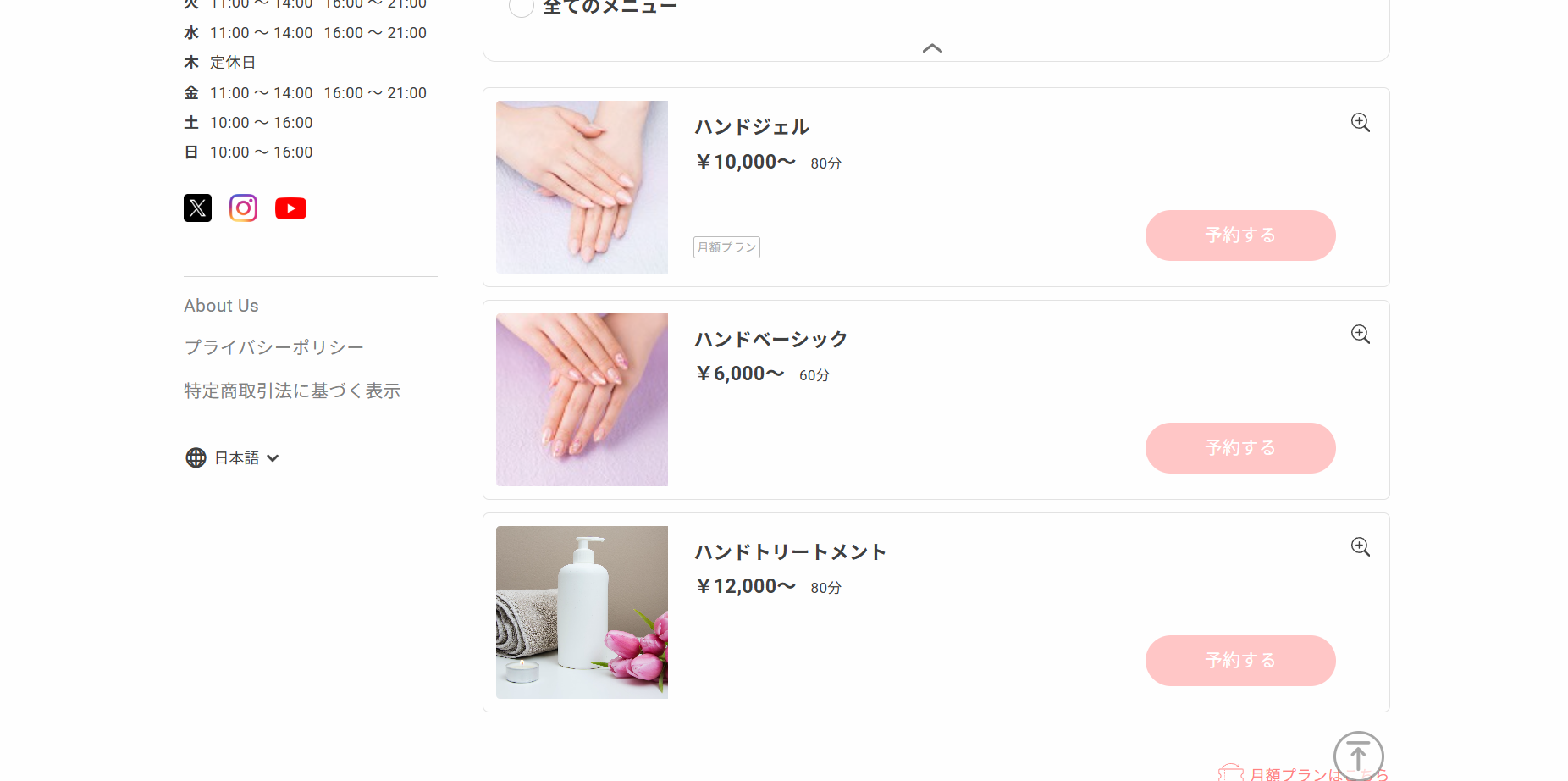 「予約、月額プラン、お問い合わせ、マイページ」の表示位置が変更されます。