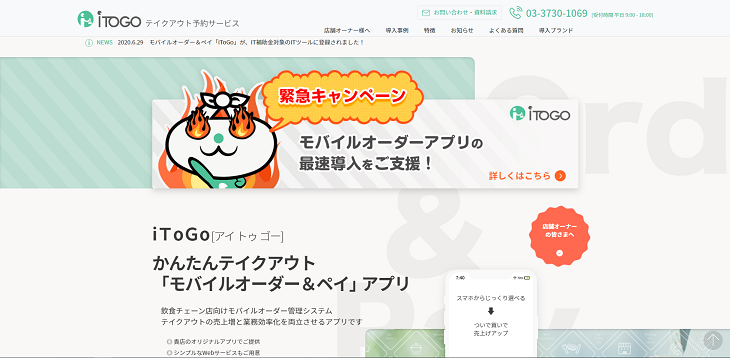 ※「IT導入補助金2020」の支援事業者に採択され、モバイルオーダー&ペイ 「iToGo」が対象ITツールとして認定されました