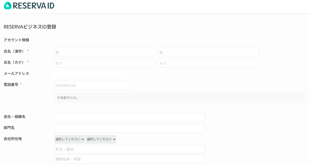 メールアドレスとパスワードを入力し、仮登録メールを送信します。届いたメールに記載されている認証用URLにアクセスすると、RESERVAビジネスID登録が完了します。