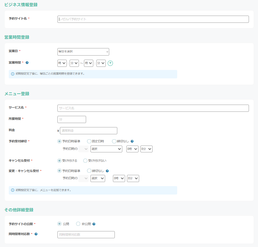 【初期設定完了】予約サイトの公開・運用まで最短3分!