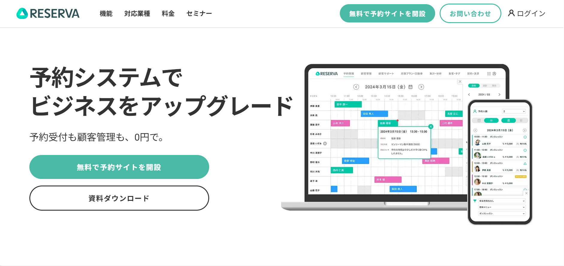 ここまで詳しく解説してきたように、事前決済が可能な予約システムを導入する際には、さまざまなメリットや注意点があります。「結局どの予約システムを選べばいいの?」と迷われている方も多いかもしれません。そんな方には、RESERVAをおすすめします。